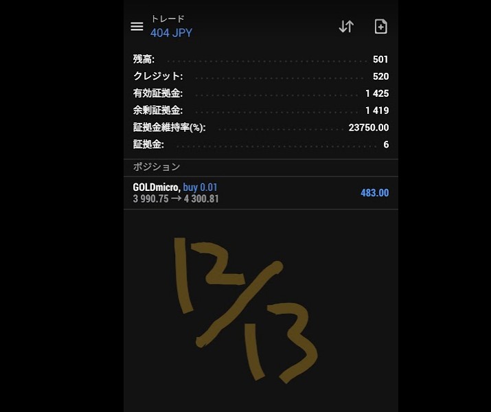 500だけ残ったので 0.01で買いポジションを取って長期でゴールドが上がれば少しはプラスにもどるかな というだけ 長期保有するにもマイナススワップがあるからこれもダメかもね