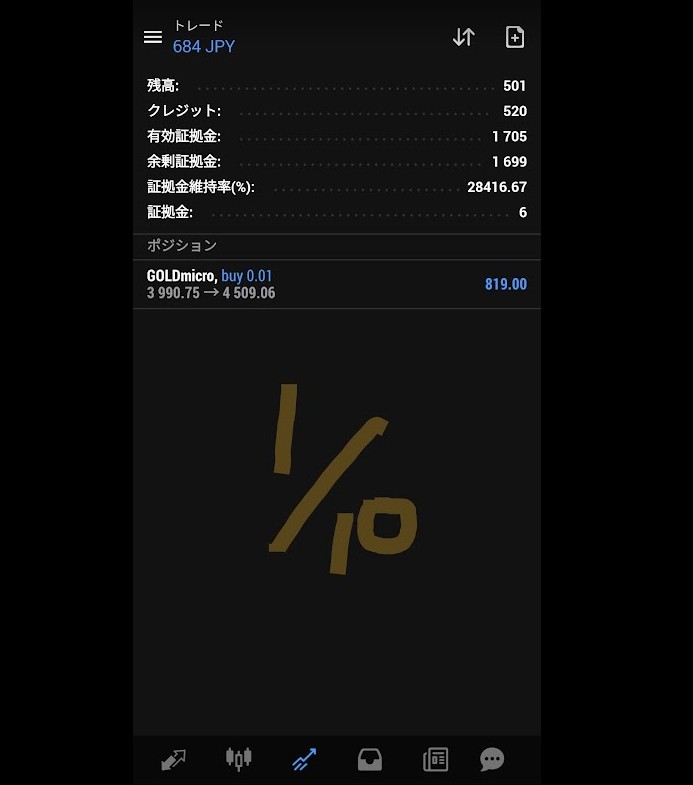 500だけ残ったので 0.01で買いポジションを取って長期でゴールドが上がれば少しはプラスにもどるかな というだけ 長期保有するにもマイナススワップがあるからこれもダメかもね